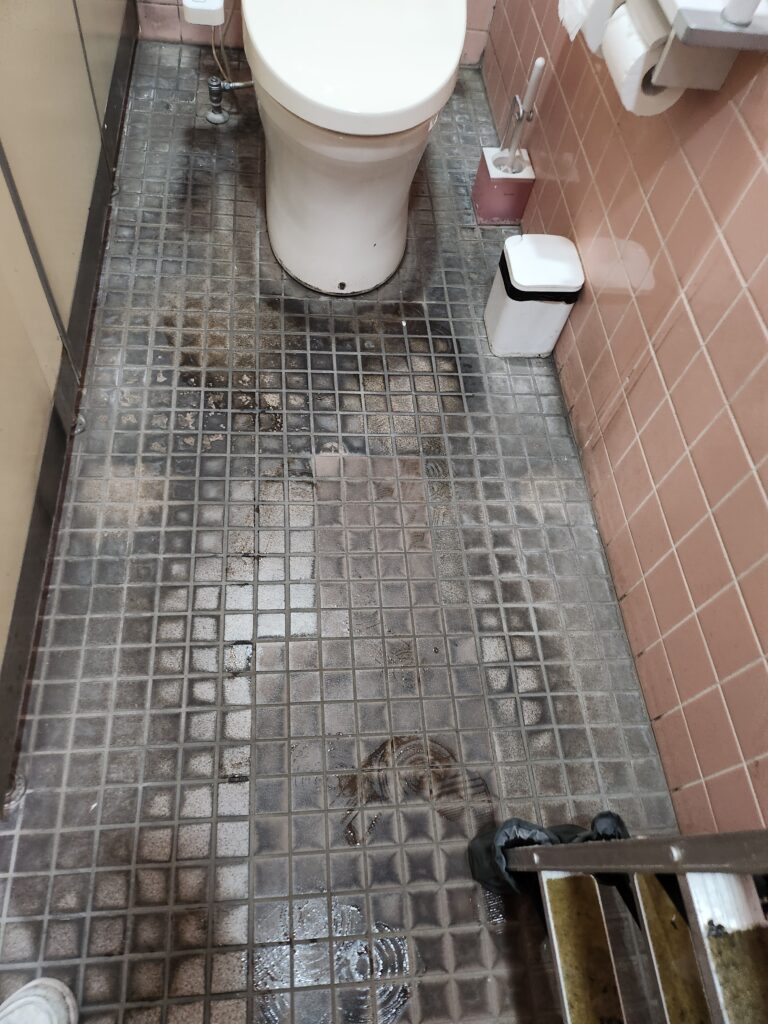 軽井沢町の⛽のトイレクリーニング床タイルバイオ洗浄してきました。 今回も中々頑固な汚れでした。